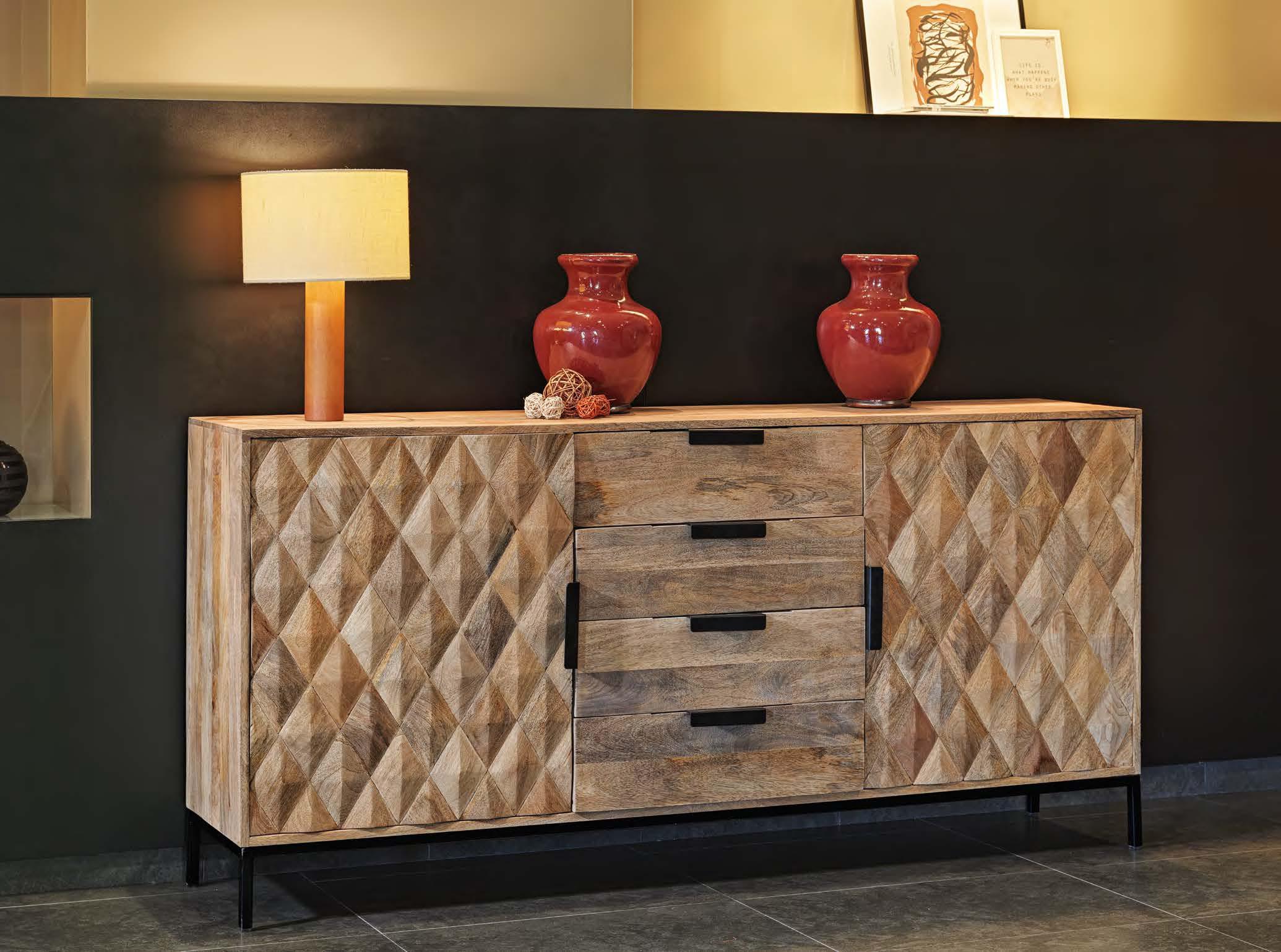 El aparador buffet Tobago es la personificación del diseño rústico contemporáneo y la funcionalidad. Su construcción en MADERA MACIZA DE ACACIA, le confiere un carácter cálido y artesanal inimaginable. Las patas de acero negro no sólo aportan una estabilidad excepcional, sino qué también añaden ese toque industrial sútil que le hace tan especial.